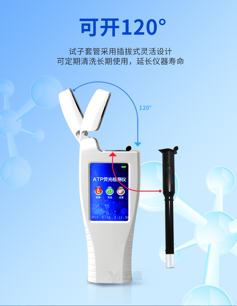 ATP熒光檢測儀操作采用生物化學(xué)反應(yīng)方法檢測ATP含量,ATP熒光檢測儀基于螢火蟲發(fā)光原理,利用“熒光素酶—熒光素體系”快速檢測三磷酸腺苷(ATP)。ATP拭子含有可以裂解細(xì)胞膜的試劑,能將細(xì)胞內(nèi)ATP釋放出來,與試劑中含有的特異性酶發(fā)生反應(yīng),產(chǎn)生光,再用熒光照度計(jì)檢測發(fā)光值,微生物的數(shù)量與發(fā)光值成正比,由于所有生物活細(xì)胞中含有恒量的ATP,所以ATP含量可以清晰地表明樣品中微生物與其他生物殘余的多少,用于判斷衛(wèi)生狀況。