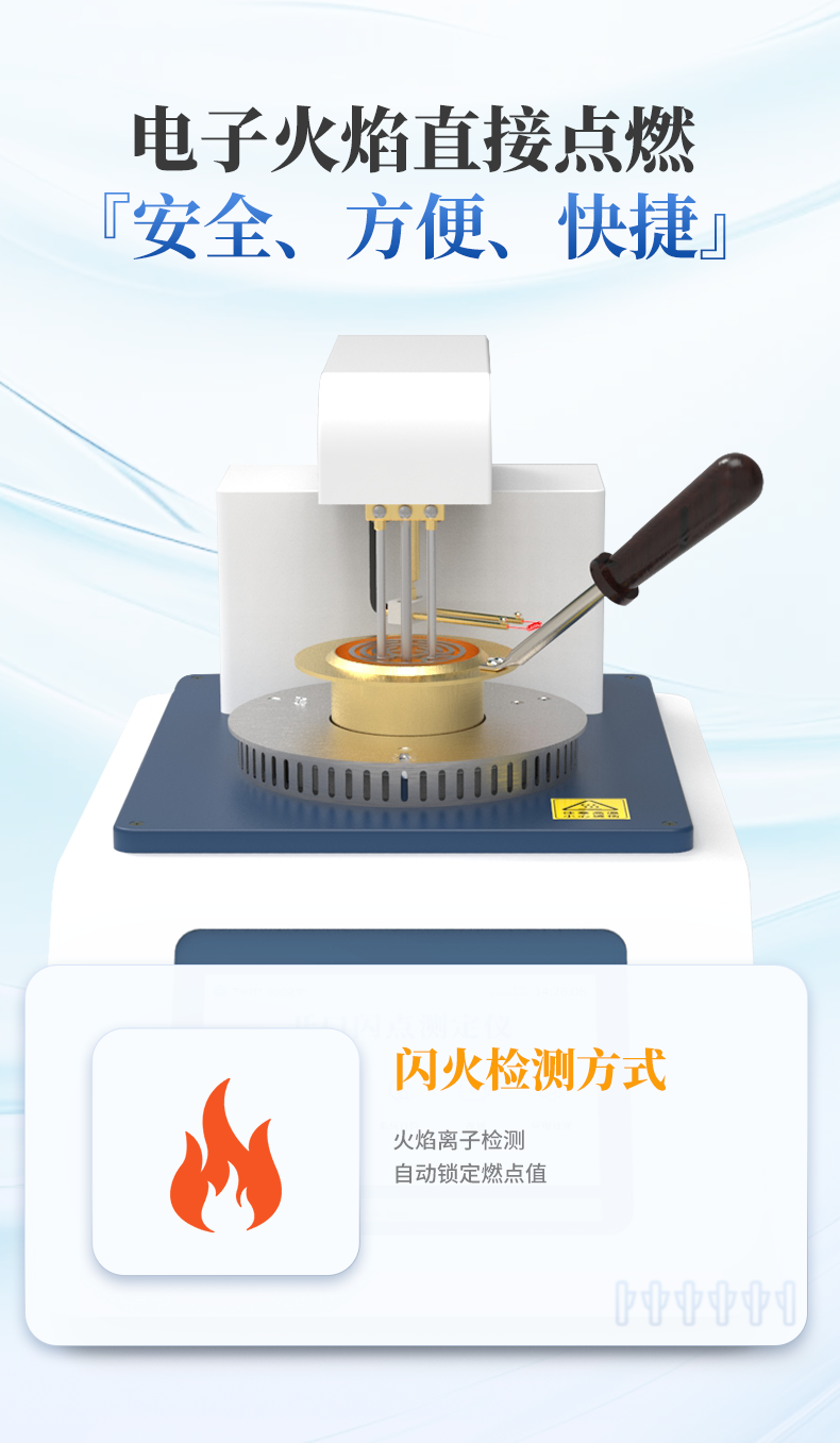 全自動開口閃點和燃點測定儀主要用于石油產(chǎn)品和其他易燃液體在特定條件下,與空氣混合后遇火源發(fā)生閃火和燃燒的**溫度的儀器。