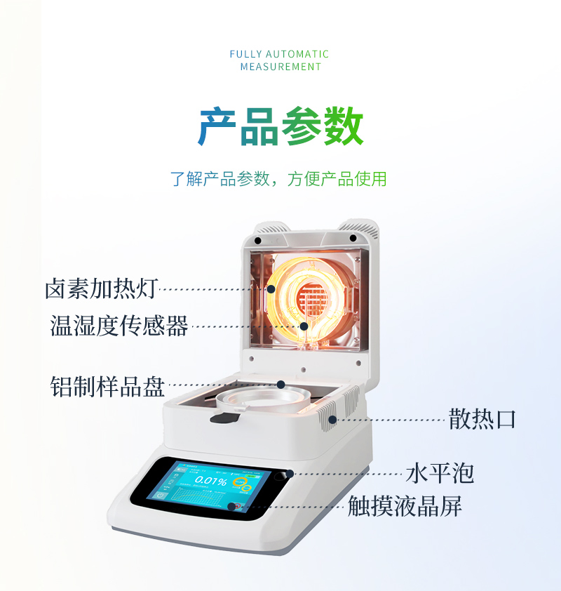 該系列快速水分測定儀應(yīng)用了國際烘箱干燥法原理,測定結(jié)果與烘箱法水分測定具有良好的一致性,工作效率卻遠(yuǎn)遠(yuǎn)高于烘箱法水分測定,一般樣品只需要幾分鐘即可測量完畢,因此受到廣大用戶的青睞與好評(píng)。