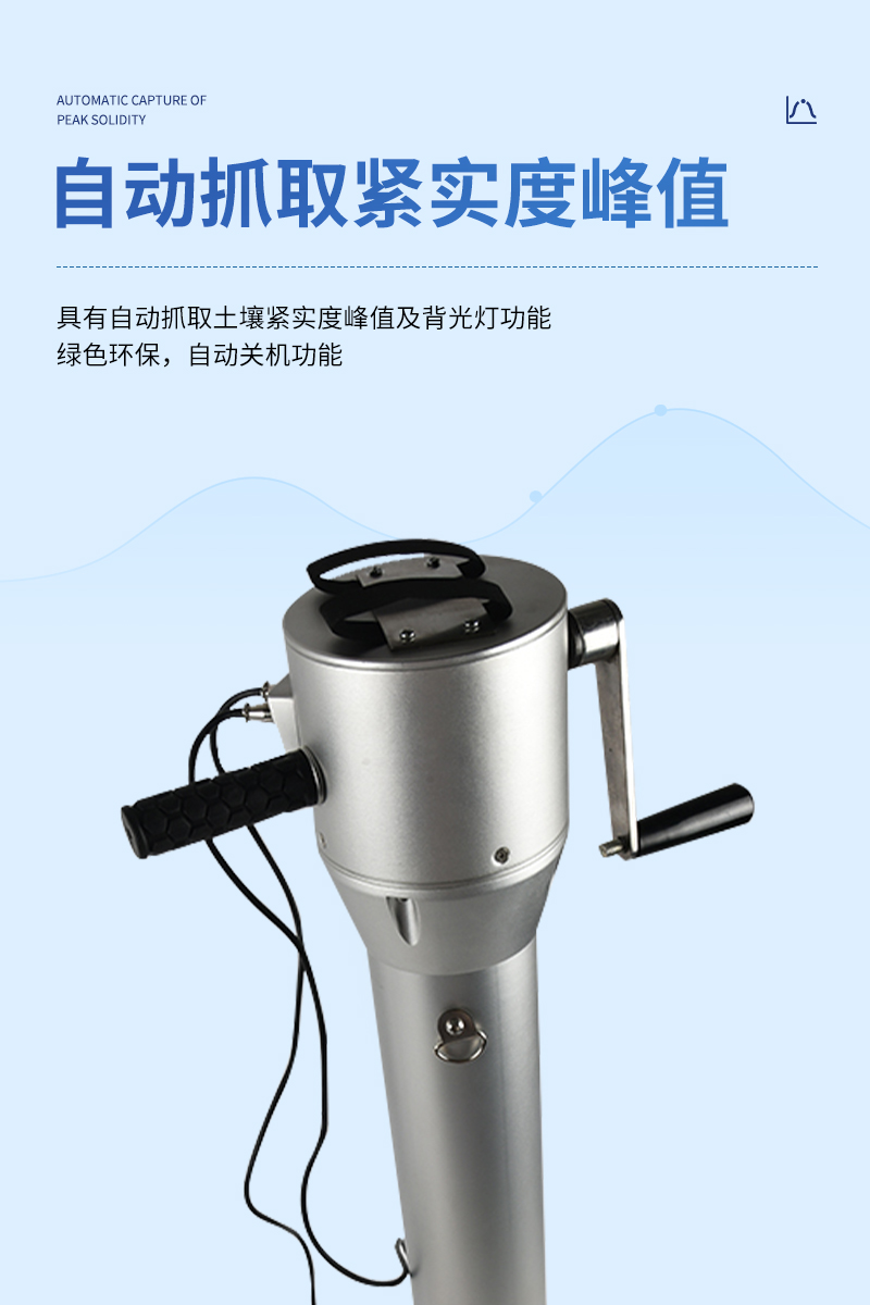 具有自動抓取土壤緊實度峰值及背光燈功能,綠色環(huán)保,自動關(guān)機功能。