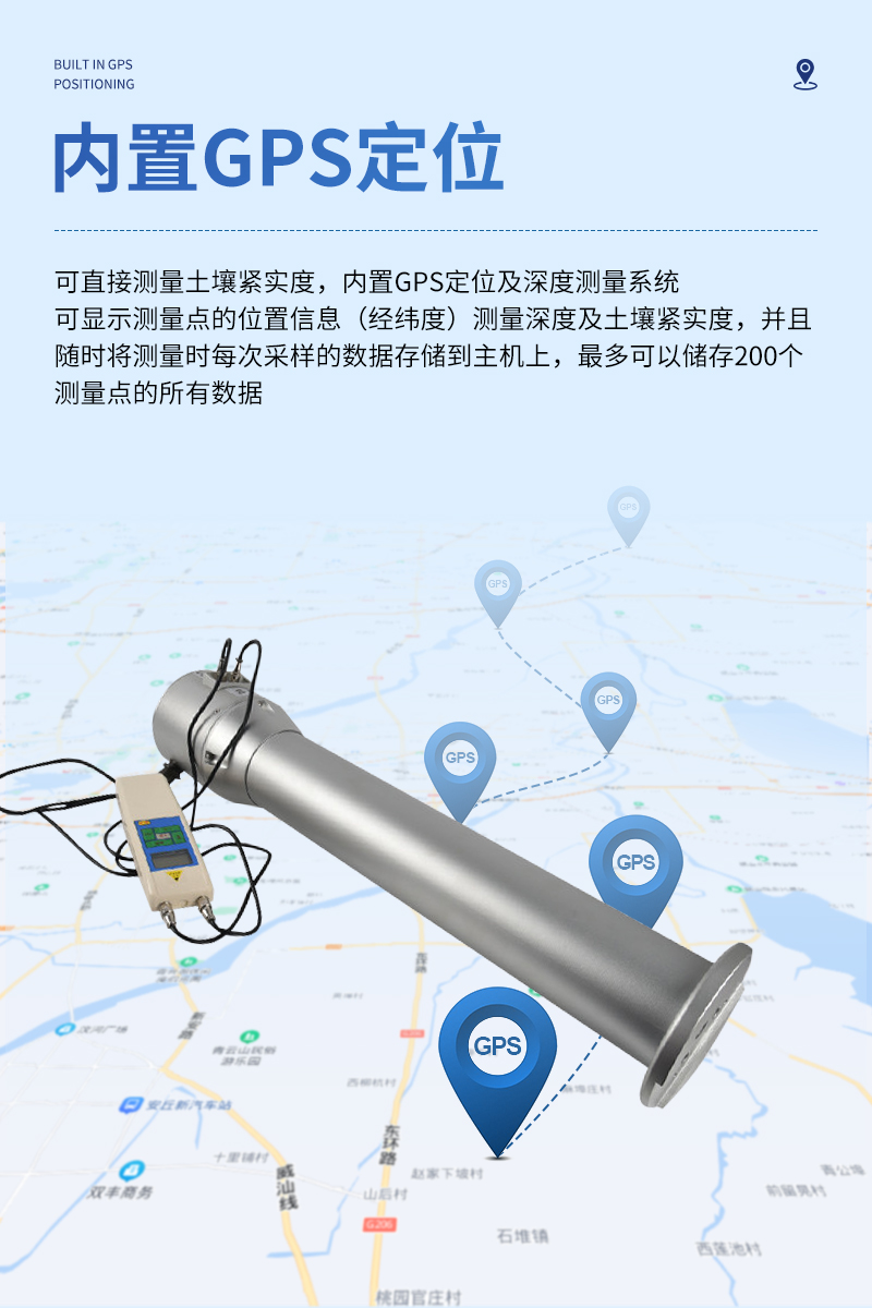 可直接測量土壤緊實度,內(nèi)置GPS定位及深度測量系統(tǒng),可顯示測量點的位置信息(經(jīng)緯度)測量深度及土壤緊實度,并且可以隨時將測量時每次采樣的數(shù)據(jù)存儲到主機上,*多可以儲存200個測量點的所有數(shù)據(jù)。